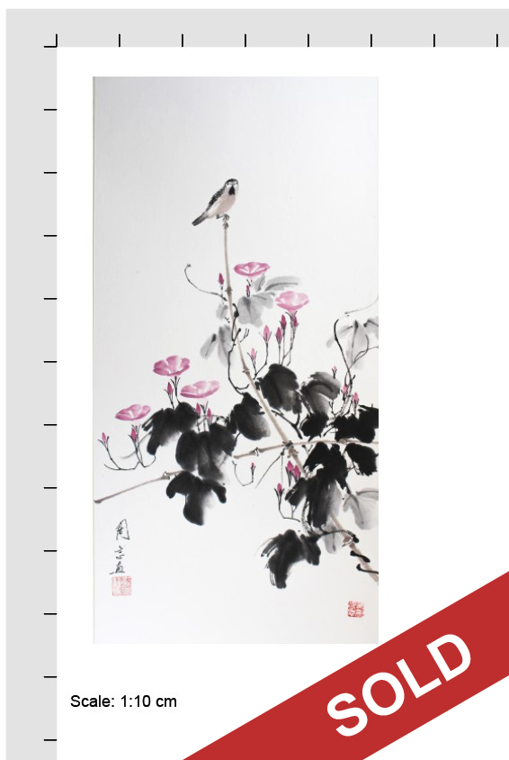 欽哲基金會 Khyentse Foundation 周士心教授慈善書畫展 Professor Johnson Chow Su-Sing Charitable Art Exhibition 畫作臻選 Artworks / ❮ 26 ❯ 26 Morning gloryInk and colour on paperMounted for framingSize: 45.5×90 cmPrice: $6,800 鵲語朝顏設色紙本 鏡心尺寸:45.5×90 cm價格:$6,800款識:周士心畫鈐印:美意延年 周士心米壽後所作 狀況 Status 已售 Sold 2025-04-30