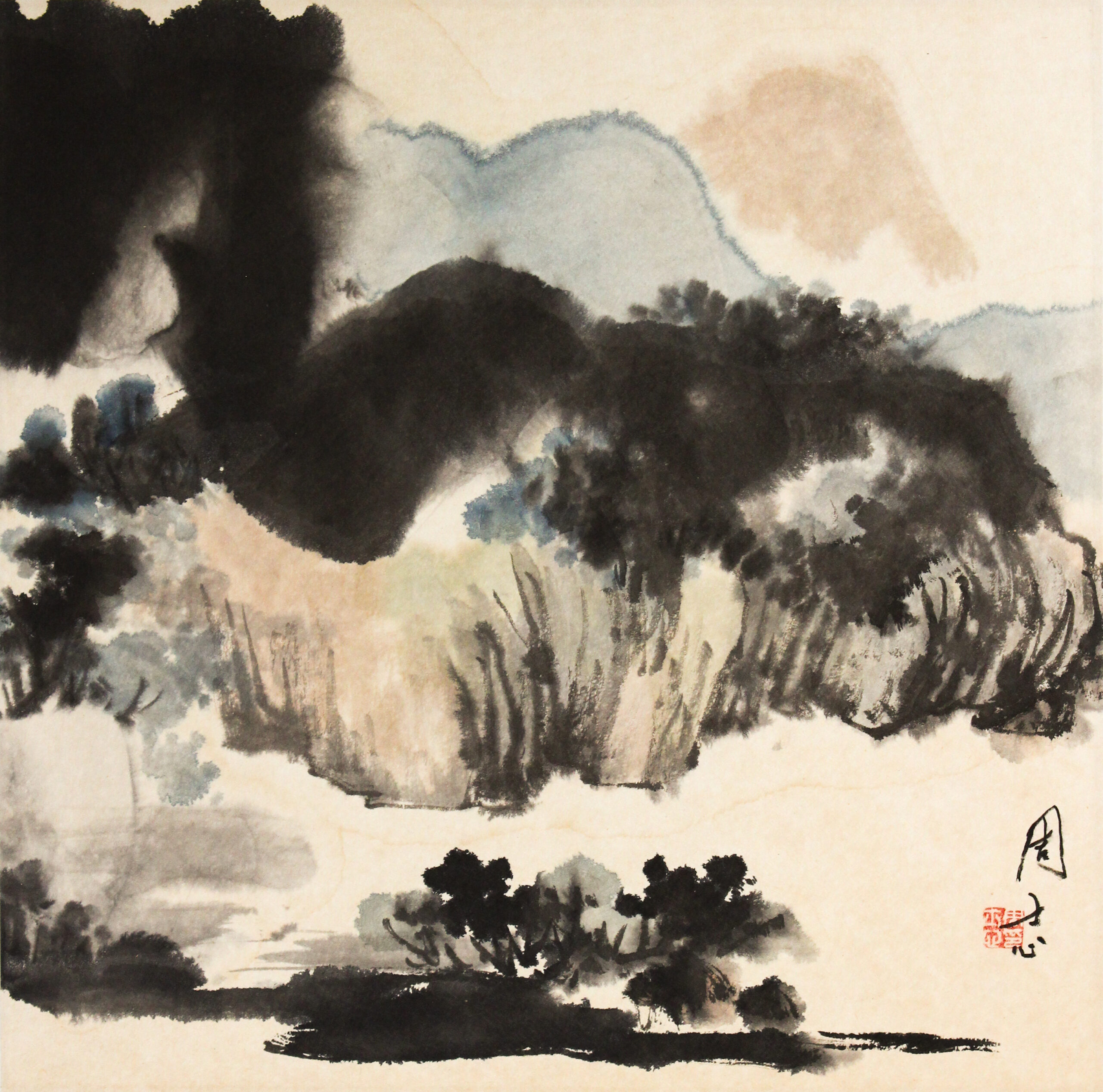 欽哲基金會 Khyentse Foundation 周士心教授慈善書畫展 Professor Johnson Chow Su-Sing Charitable Art Exhibition 畫作臻選 Artworks / ❮ 50 ❯ 50 LandscapeInk and colour on paperMounted for framingSize: 35.5×35 cmPrice: $3,500 煙江暮靄設色紙本鏡心尺寸:35.5×35 cm價格:$3,500款識:周士心鈐印:周士心印 狀況 Status 已售 Sold 2025-05-01