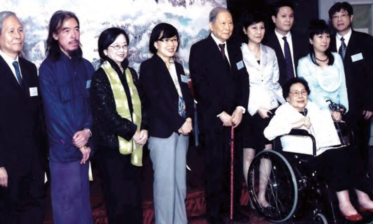 Professor Chow (5th left), Mrs. Hing-yu Luk Chow (Professor Chow’s wife, the lady in the wheel chair) (7th left) and Chief Curator Tang (2nd left) at Hong Kong Museum of Art.